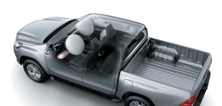 Hilux được trang bị hệ thống túi khí nhằm đảm bảo an toàn cho mọi hành khách trên xe, bao gồm: hành khách phía trước, túi khí đầu gối cho người lái, túi khí bên hông ghế trước và túi khí rèm cho ghế trước và sau.