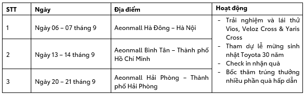Hà Nội, ngày 04 tháng 9 năm 2025 – Nhân dịp kỷ niệm 30 năm thành lập, Công ty Ô tô Toyota Việt Nam (TMV) chính thức giới thiệu phiên bản đặc biệt kỷ niệm 30 năm cho ba mẫu xe chủ lực: Vios, Veloz Cross và Yaris Cross.